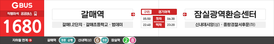 구리/서울시 직행좌석버스 경기여객 1680번 (갈매역.갈매초등학교.범데미 ↔ 잠실광역환승센터)