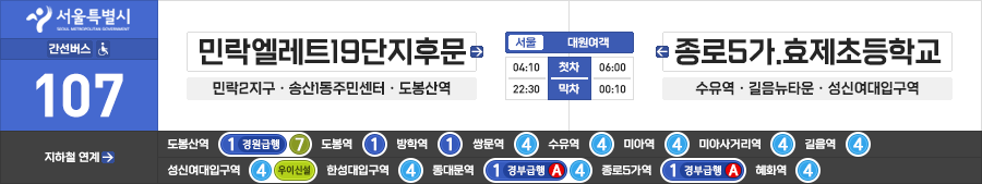 의정부/서울시 간선버스 대원여객 107번 (민락엘레트19단지후문.민락주공2단지 ↔ 종로5가.효제초등학교)