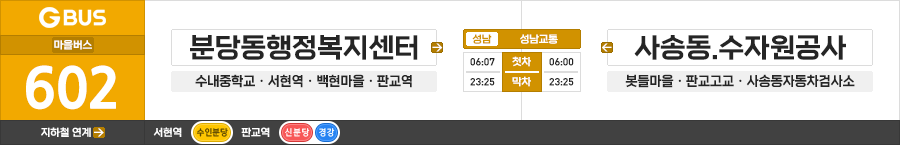 성남시 마을버스 성남교통 602번 (분당동행정복지센터.서현역 ↔ 판교역동편.사송동.수자원공사)