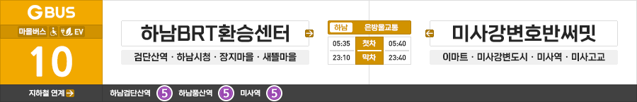 하남시 마을버스 은방울교통 10번 (하남BRT환승센터.하남검단산역 ↔ 미사파출소.미사강변호반써밋)