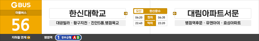 오산/화성시 마을버스 한신운수 56번 (한신대학교.대광빌라 ↔ 병점역후문.대림아파트서문)