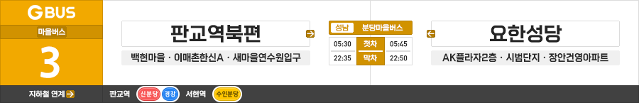 성남시 마을버스 분당마을버스 3번 (판교역북편.백현마을 ↔ 장안건영아파트.요한성당)