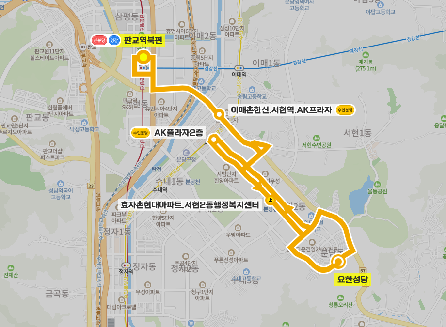 ◼ 막차 : 판교역북편 - 22:35 | 요한성당 - 22:50