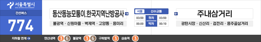 서울/고양/파주시 간선버스 신수교통 774번 (동산동능모퉁이.한국지역난방공사.불광역 ↔ 용주골.주내삼거리)