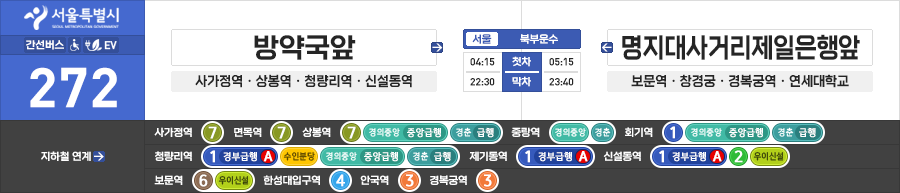 서울특별시 간선버스 북부운수 272번 (방약국앞.사가정역.면목역 ↔ 연대앞.명지대사거리제일은행앞)