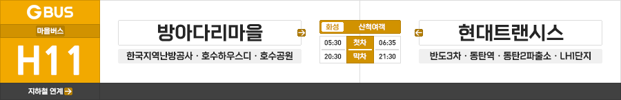화성시 마을버스 산척여객 H11번 (방아다리마을.한국지역난방공사 ↔ LH1단지.현대트랜시스)