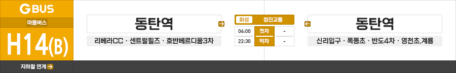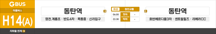 화성시 마을버스 청진교통 H14(A)번/H14(B)번 (동탄역.영천초 ↔ 리베라CC.동탄역)