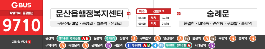 파주/고양/서울시 직행좌석버스 신일여객 9710번 (문산읍행정복지센터.문산역.월롱역 ↔ 독립문역.숭례문)