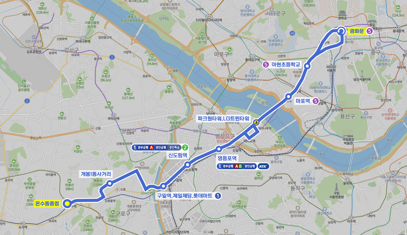 → 광화문 ▷ 온수동 방면만 여의도환승센터 정류장을 경유하오니, 이 점 참고하시기 바랍니다.