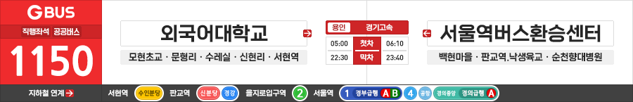 용인/광주/성남/서울시 직행좌석버스 경기고속 1150번 (외국어대학교 ↔ 순천향대학병원.서울역버스환승센터)