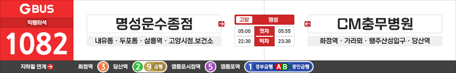 고양/서울시 직행좌석버스 명성 1082번 (명성운수종점.두포동.고양시청 ↔ 영등포시장.CM충무병원)