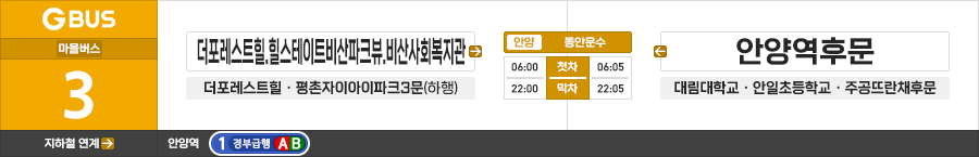 안양시 일반시내버스 동안운수 3번 (더포레스트힐.힐스테이트비산파크뷰 ↔ 안양역후문)