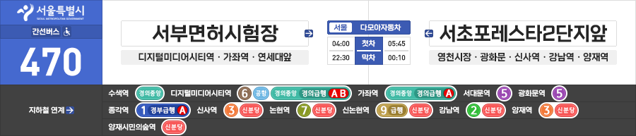 서울특별시 간선버스 다모아자동차 470번 (서부면허시험장.DMC역 ↔ 양재역.서초포레스타2단지앞)