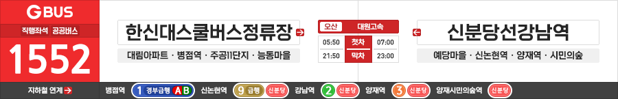 오산/화성/서울시 직행좌석버스 대원고속 1552번 (한신대스쿨버스정류장 ↔ 신분당선강남역.시민의숲)