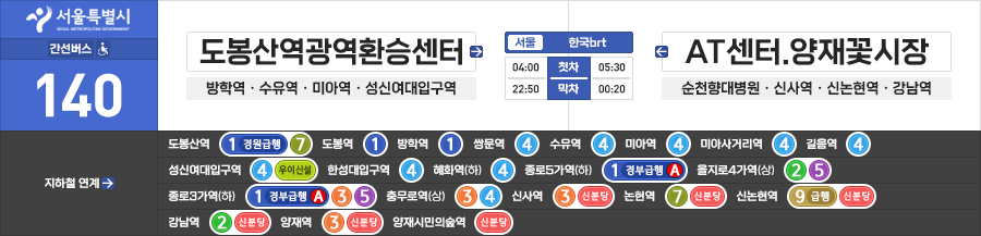 서울특별시 간선버스 한국brt 140번 (도봉산역광역환승센터.도봉역 ↔ 양재역.AT센터.양재꽃시장)