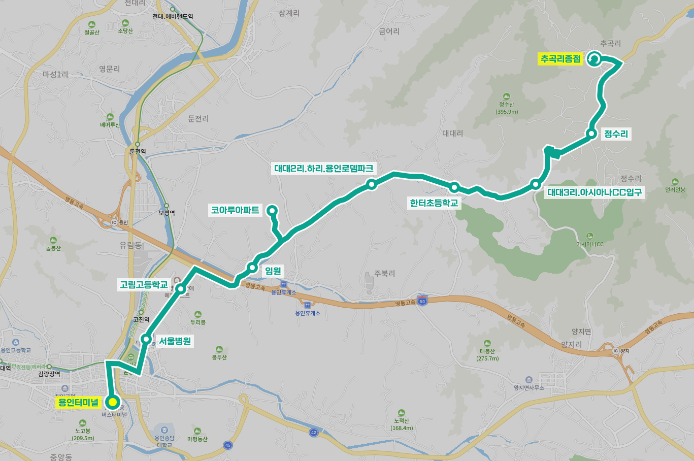 ◼ 막차 : 용인터미널 - 21:30 | 추곡리종점 - 22:05