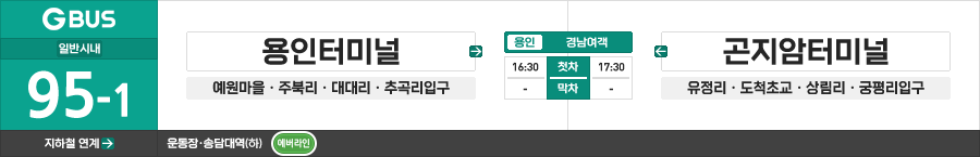 ◼ 첫차 : 용인터미널 - 16:30 | 곤지암터미널 - 17:30