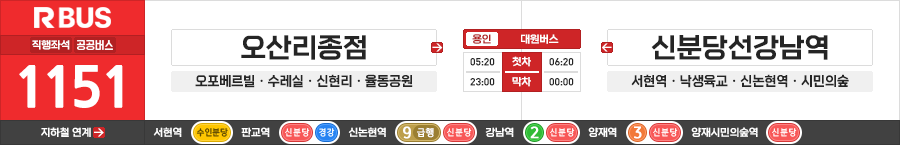 용인/광주/성남/서울시 직행좌석버스 대원버스 1151번 (오산리종점 ↔ 신분당선강남역.시민의숲)