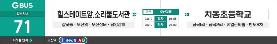 오산/화성시 일반시내버스 오산교통 71번 (힐스테이트앞.소리울도서관.오산역 ↔ 신미주아파트.치동초등학교)