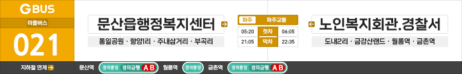 파주시 마을버스 파주교통 021번 (문산읍행정복지센터.문산타워 ↔ 금촌역.노인복지회관.경찰서)