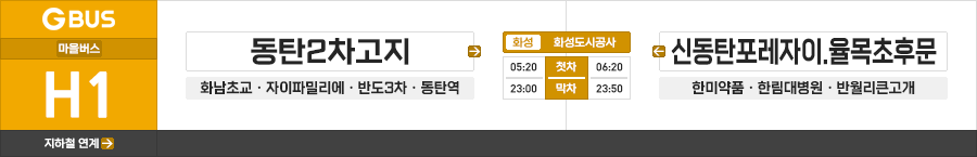 화성/용인시 일반시내버스 화성도시공사 H1번 (동탄2차고지.화남초 ↔ 신동탄포레자이.율목초후문)