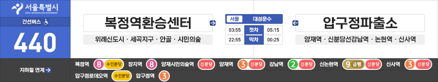 서울/성남시 간선버스 대성운수 440번 (복정역환승센터.위례신도시 ↔ 강남역.신사역.압구정파출소)