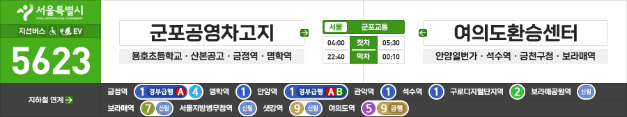 군포/안양/서울시 지선버스 군포교통 5623번 (군포공영차고지.금정역 ↔ 여의도역.여의도환승센터)