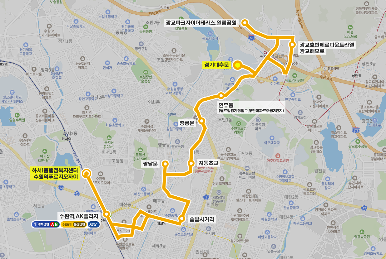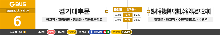 수원시 일반시내버스 광교운수 6번 (경기대후문.광교역 ↔ 화서1동행정복지센터.수원역푸르지오자이)