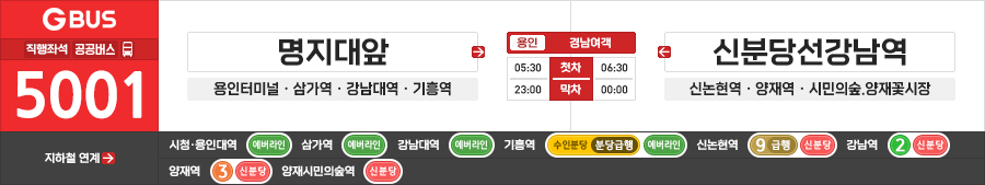 용인/서울시 직행좌석버스 경남여객 5001번 (명지대앞.처인구청.삼가역 ↔ 신분당선강남역.양재역)