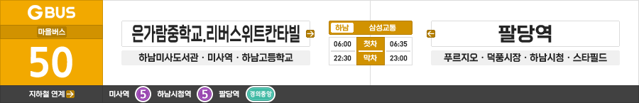 하남/남양주시 마을버스 삼성교통 50번 (은가람중학교.리버스위트칸타빌.미사도서관 ↔ 스타필드하남.팔당역)