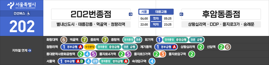 남양주/서울시 간선버스 태릉교통 202번 (202번종점.별내신도시 ↔ 서울역.후암동종점)