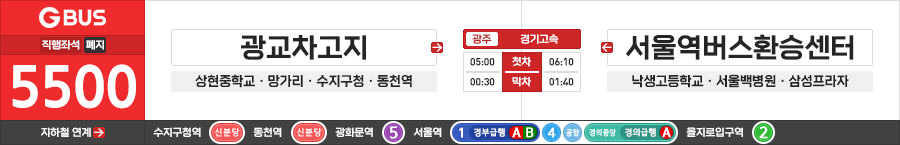 용인/서울시 직행좌석버스 경기고속 5500번 (광교차고지.정평.머내 ↔ 서울역버스환승센터)