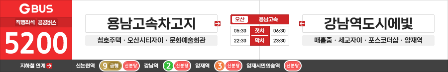 오산/서울시 직행좌석버스 용남고속 5200번 (용남고속차고지.오산청호아파트 ↔ 강남역도시에빛.양재역)