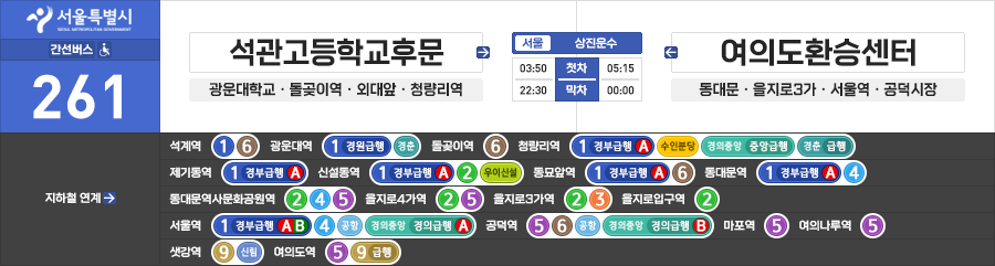 서울특별시 간선버스 상진운수 261번 (석관고등학교후문.광운대역 ↔ 여의나루역.여의도환승센터)