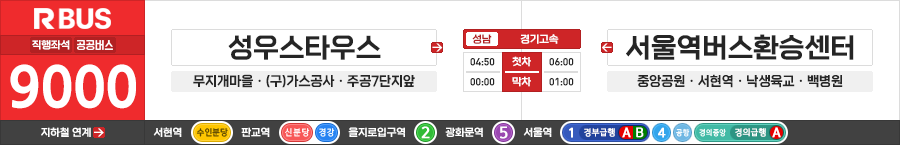 성남/서울시 직행좌석버스 경기고속 9000번 (성우스타우스.무지개마을 ↔ 세종문화회관.서울역버스환승센터)