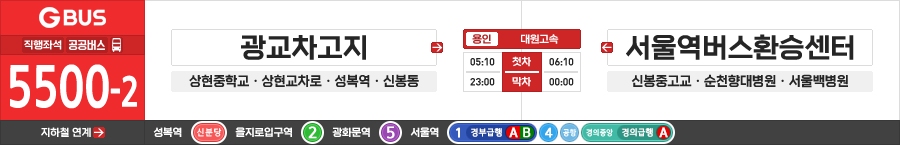 용인/서울시 직행좌석버스 대원고속 5500-2번 (광교차고지.성복역 ↔ 을지로입구.서울역버스환승센터)