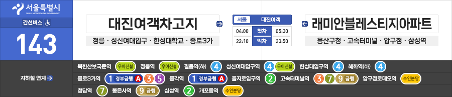서울특별시 간선버스 대진여객 143번 (대진여객차고지.정릉우체국 ↔ 개포동역.래미안블레스티지아파트)