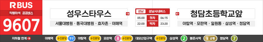 성남/서울시 직행좌석버스 성남시내버스 9607번 (성우스타우스.낙생농협 ↔ 청담역.청담고등학교앞)