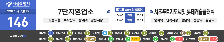 서울특별시 간선버스 삼화상운·흥안운수 146번 (7단지영업소.도봉구청 ↔ 서초푸르지오써밋.롯데캐슬클래식)