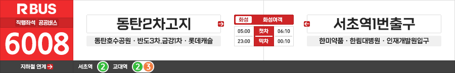 화성/서울시 직행좌석버스 화성여객 6008번 (동탄2차고지.동탄호수공원 ↔ 인재개발원입구.서초역1번출구)