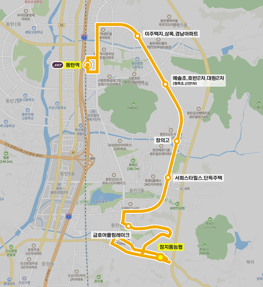 ◼ 막차 : 장지동농협 - 21:45 | 동탄역 - 22:30