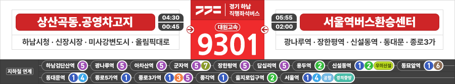 하남/서울시 직행좌석버스 대원고속 9301번 (상산곡동.공영차고지 ↔ 을지로입구.서울역버스환승센터)