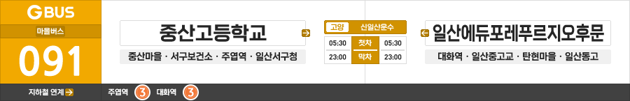 고양시 마을버스 신일산운수 091번 (중산고등학교.해태쇼핑.중산사거리 ↔ 일산에듀포레푸르지오후문)