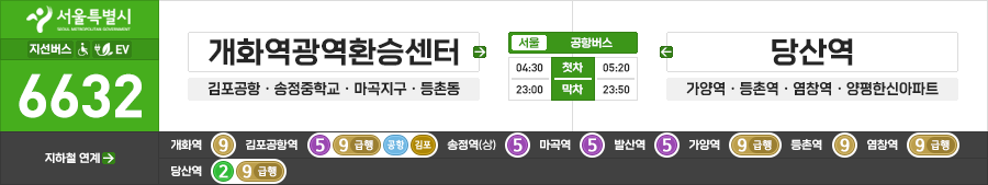 서울특별시 지선버스 공항버스 6632번 (개화역광역환승센터.김포국제공항 ↔ 양평한신아파트.당산역)
