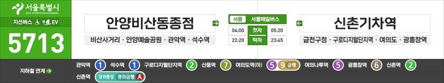 안양/서울시 간선버스 서울매일버스 5713번 (안양비산동종점.비산사거리 ↔ 광흥창역.신촌기차역)