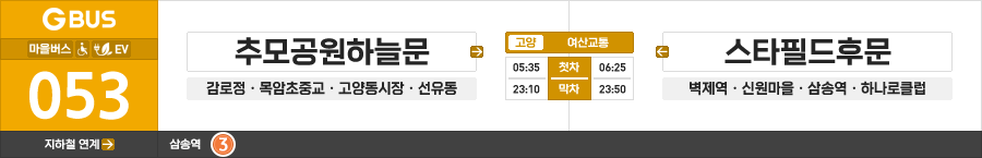 고양시 마을버스 여산교통 053번 (추모공원하늘문.푸른마을.고양동시장 ↔ 신원마을.삼송역.스타필드후문)